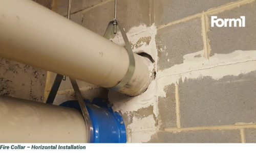 Here is an example of fire collars in use. They contain intumescent materials that expand rapidly with heat, to effectively seal the penetration and resist fire burning from one level to the next.